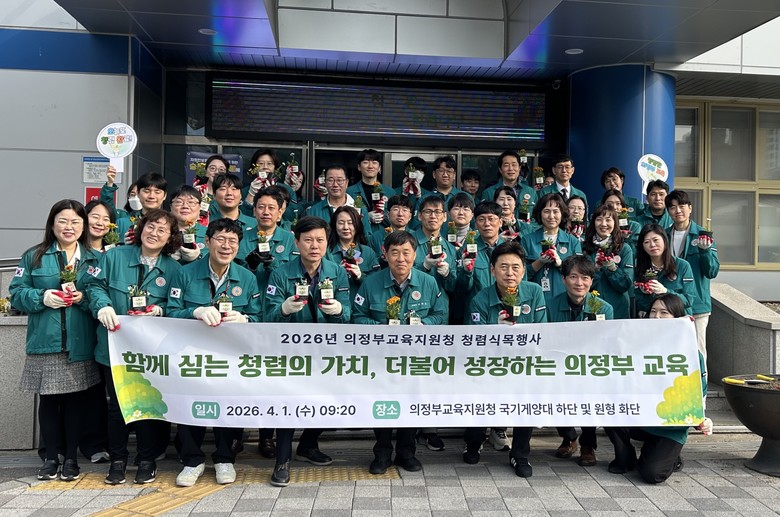 [의정부시 세계타임즈=송민수 기자] 의정부교육지원청(교육장 서권호)은 식목일을 맞이하여 교육공동체 내 청렴 문화를 확산하고, 청렴을 ‘심고 가꾸는 가치’로 내면화하기 위한 ‘2026 청렴 식목 행사’를 진행했다.